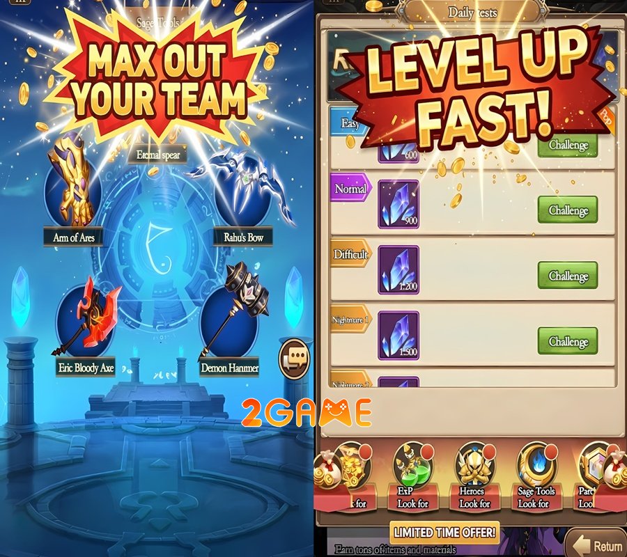 Hành trình khám phá thế giới thần thoại còn trở nên sống động hơn bao giờ hết thông qua chế độ câu chuyện đầy lôi cuốn, nơi bạn phải đối mặt với những người khổng lồ Titan, những quái vật cổ đại bước ra từ bóng tối và những tên Boss mang sức mạnh thần thánh. Mỗi thử thách vượt qua không chỉ mang lại những phần thưởng hiếm có mà còn là một nấc thang đưa bạn đến gần hơn với bí mật của đỉnh Olympus.
